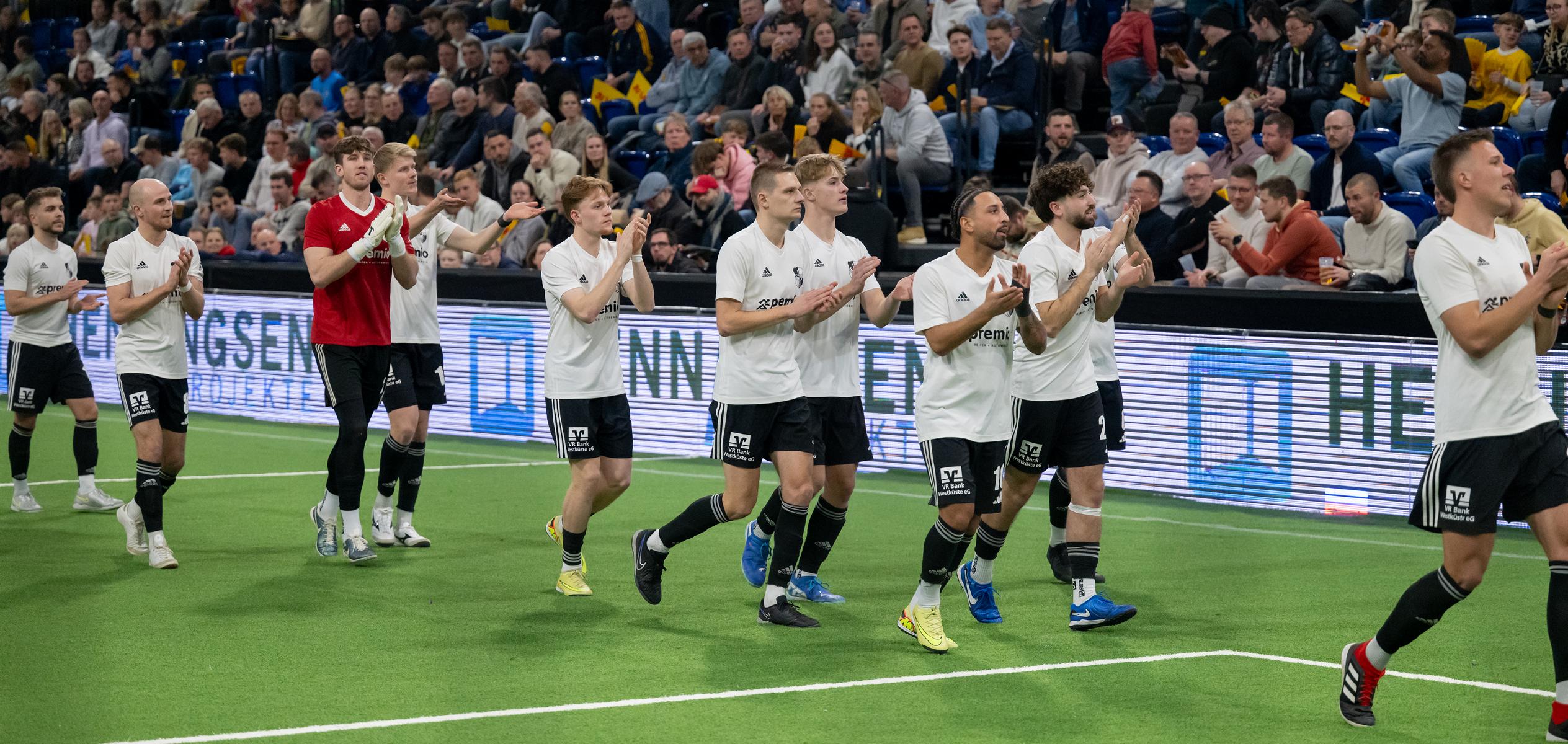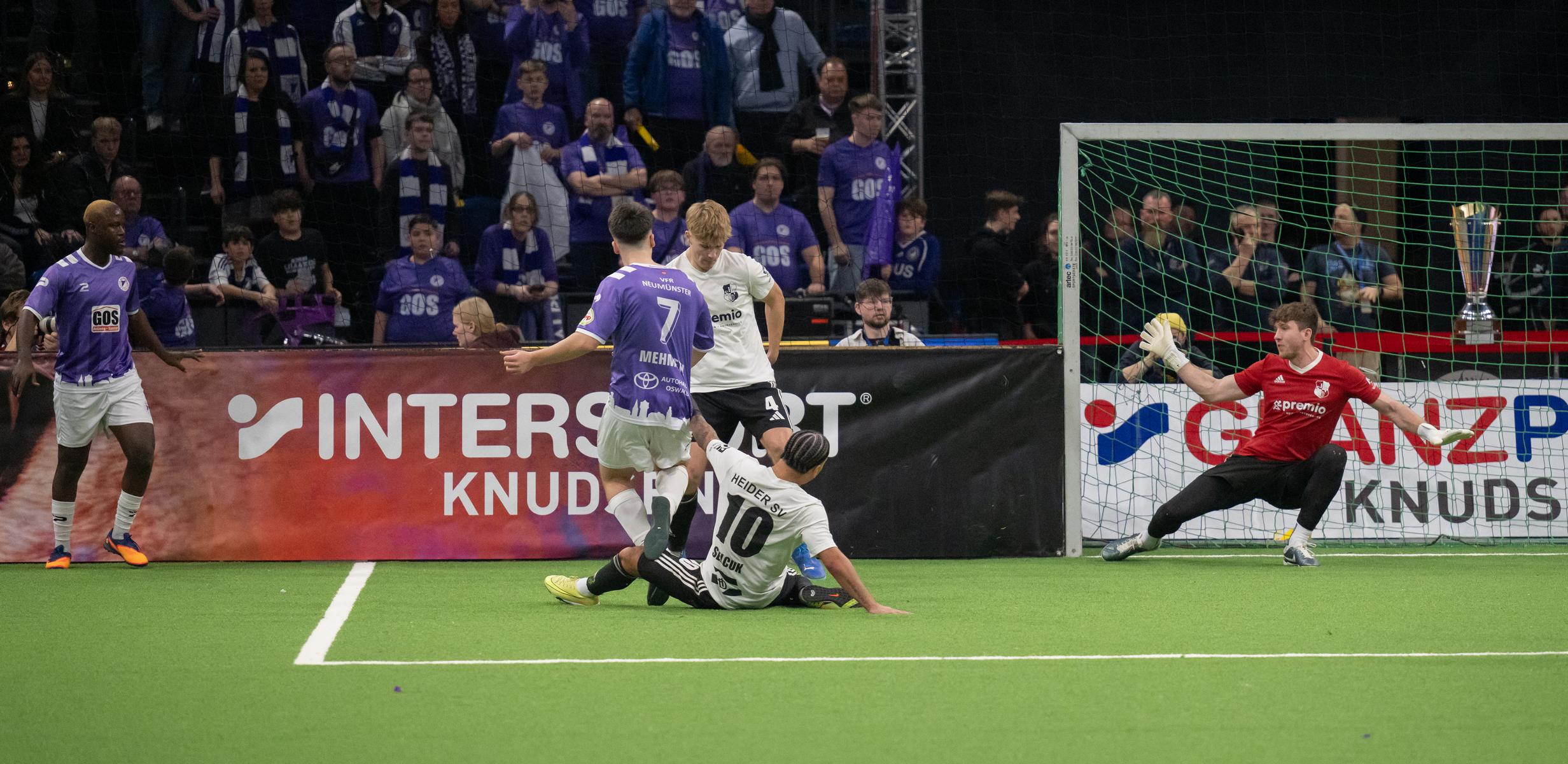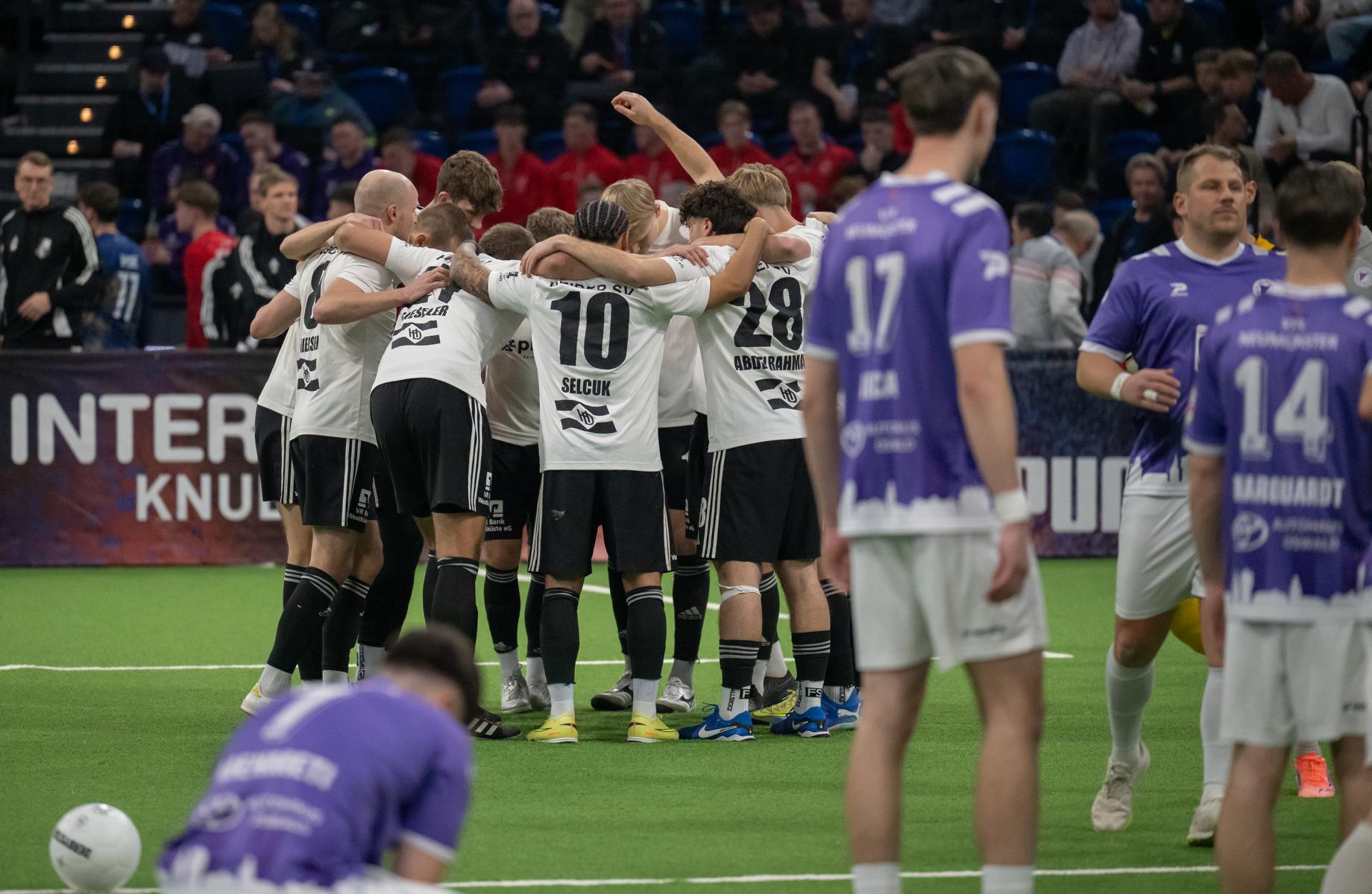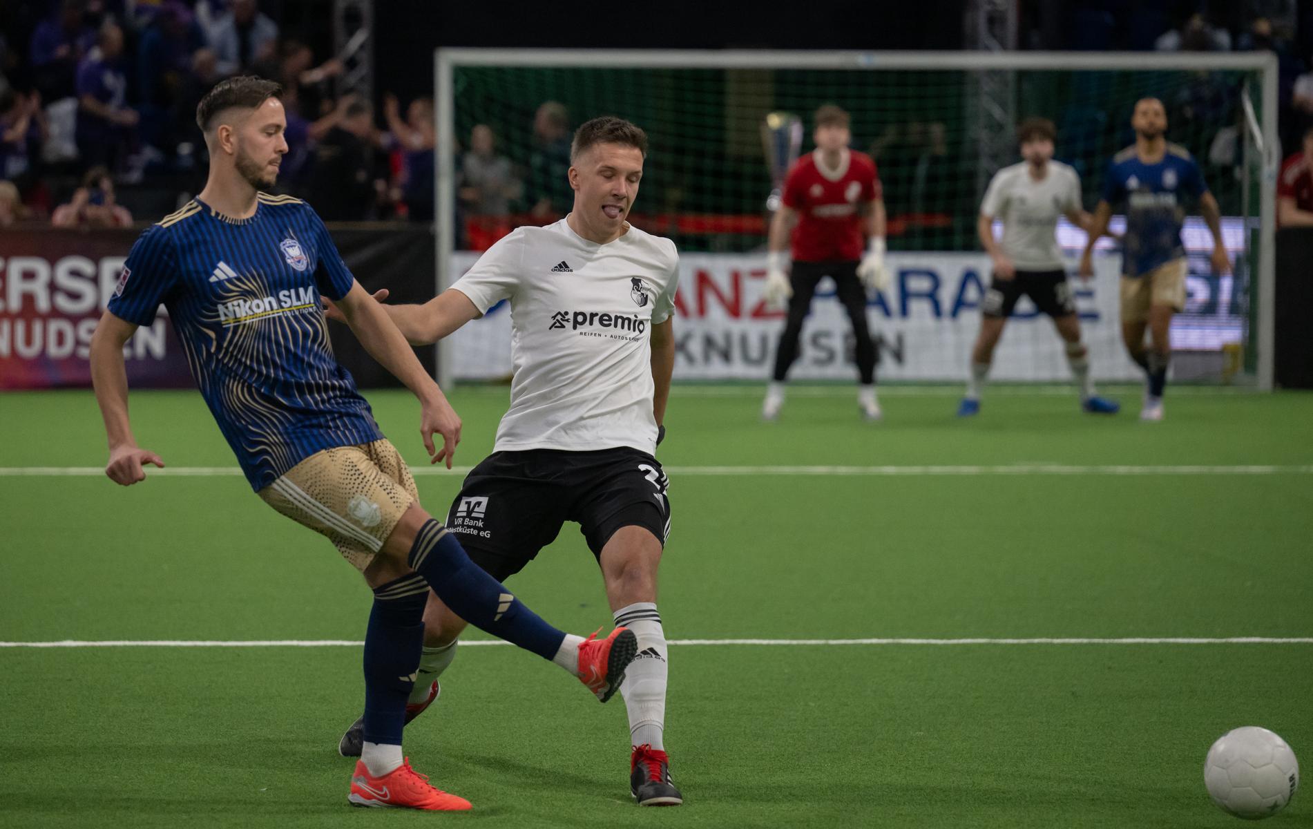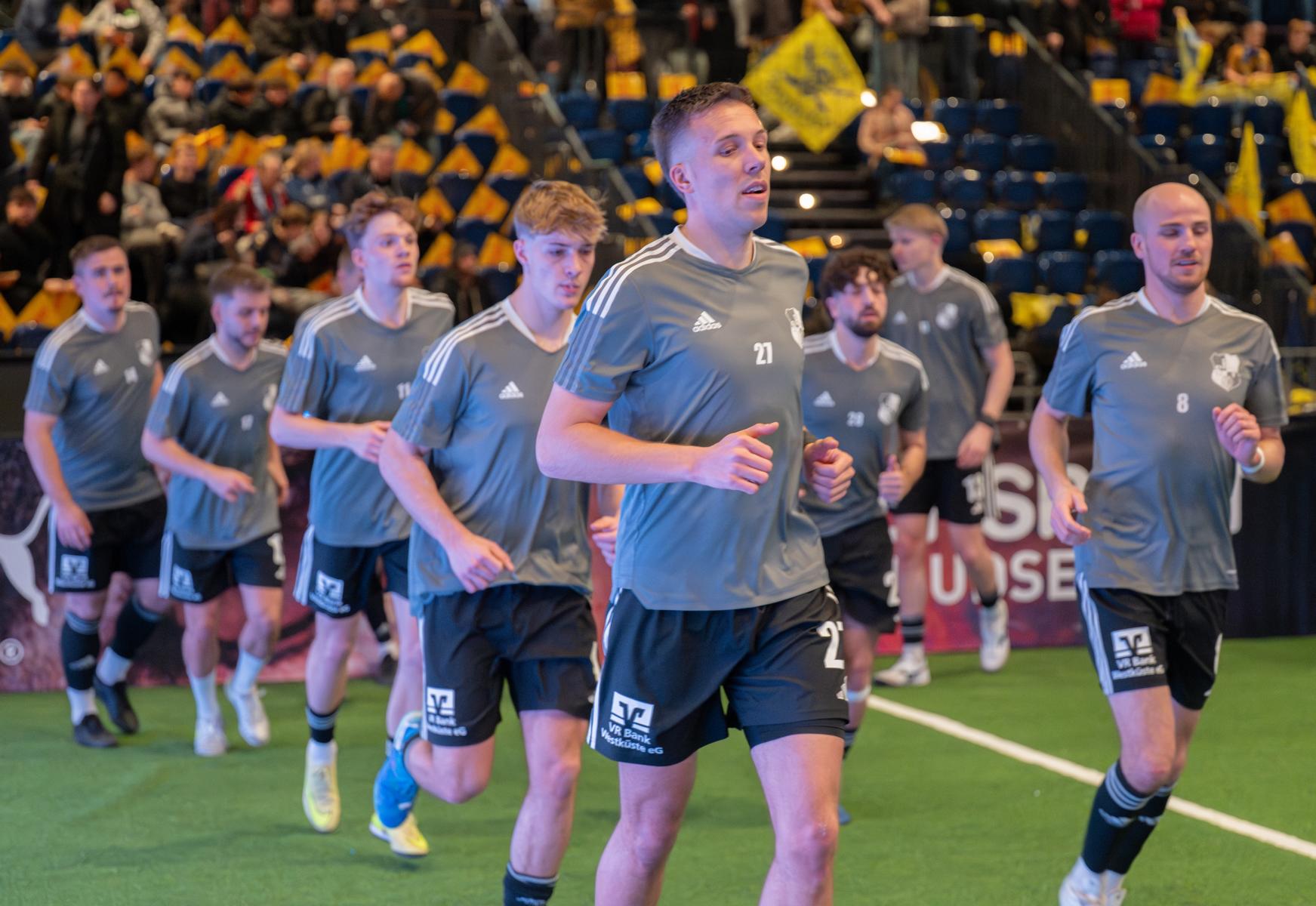 Im zweiten Gruppenspiel gegen den VfR Neumünster legten wir erneut stark los und führten schnell 2:0, Wolf und Gieseler trafen. Neumünster kam aber zurück und erkämpfte sich noch ein 2:2. Ein Spiel, das zeigte, wie eng die Duelle zwischen den beiden Oberligisten aktuell sind und wie schnell Partien in der Halle kippen können.