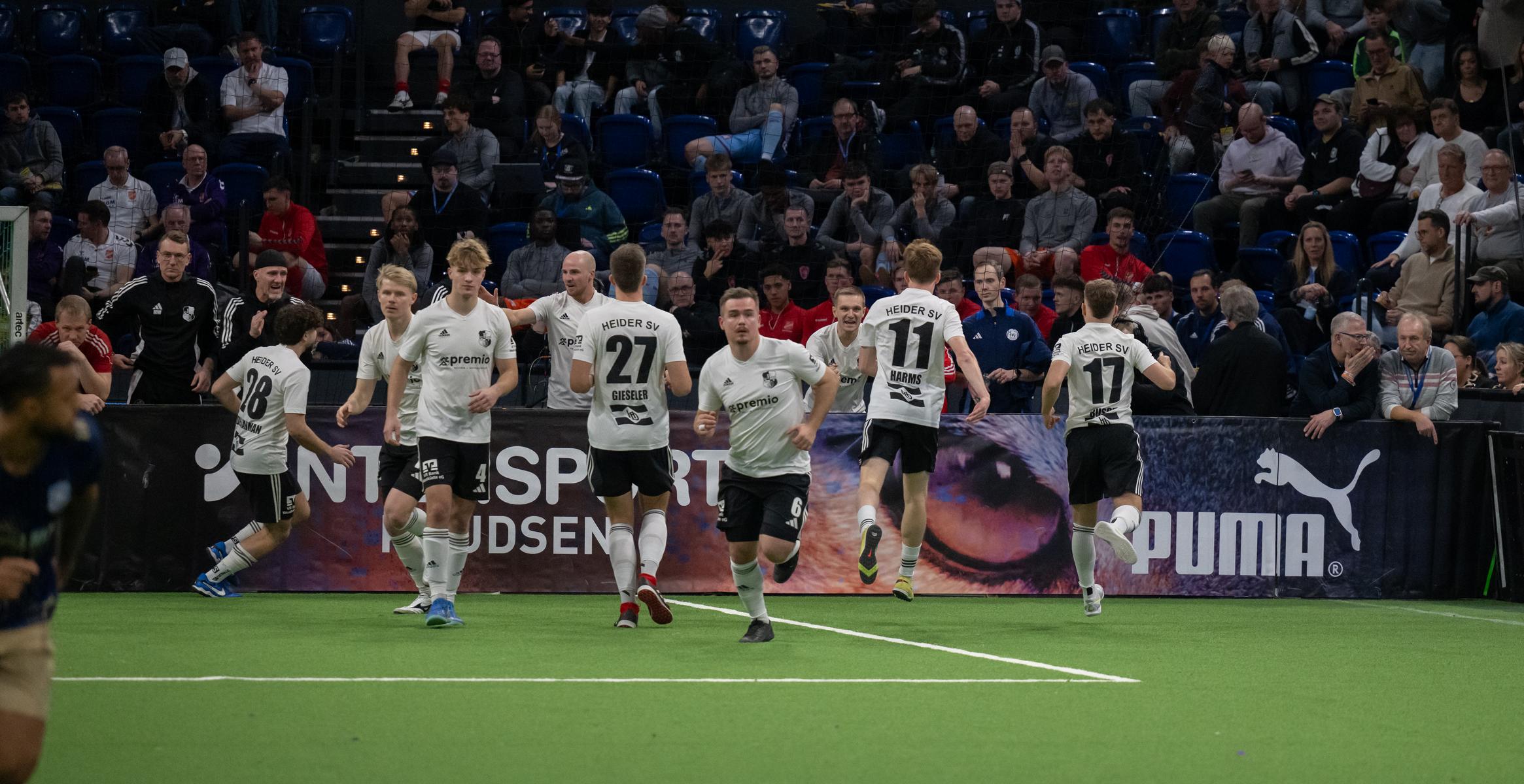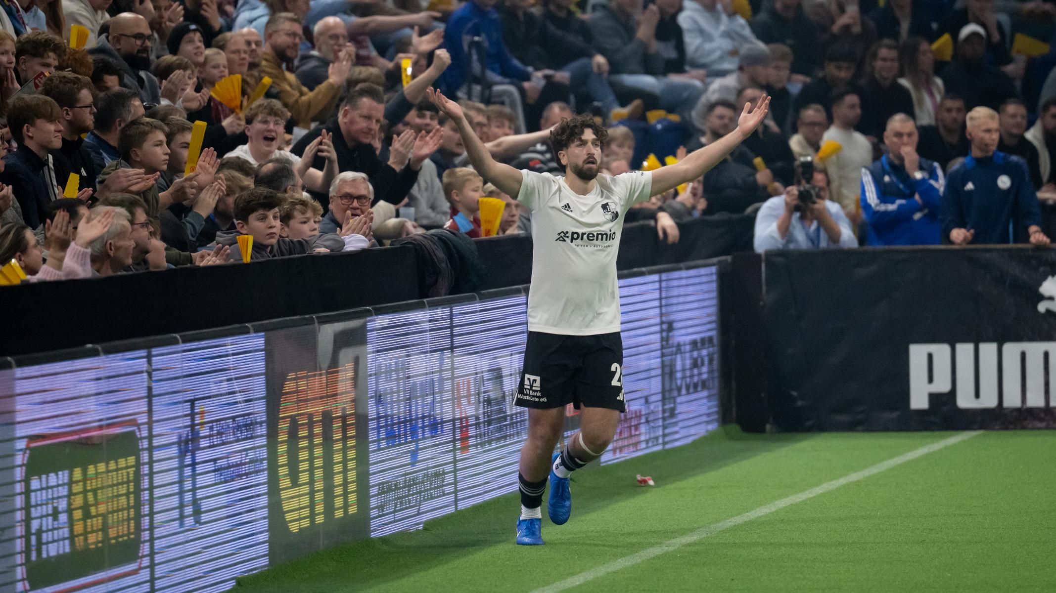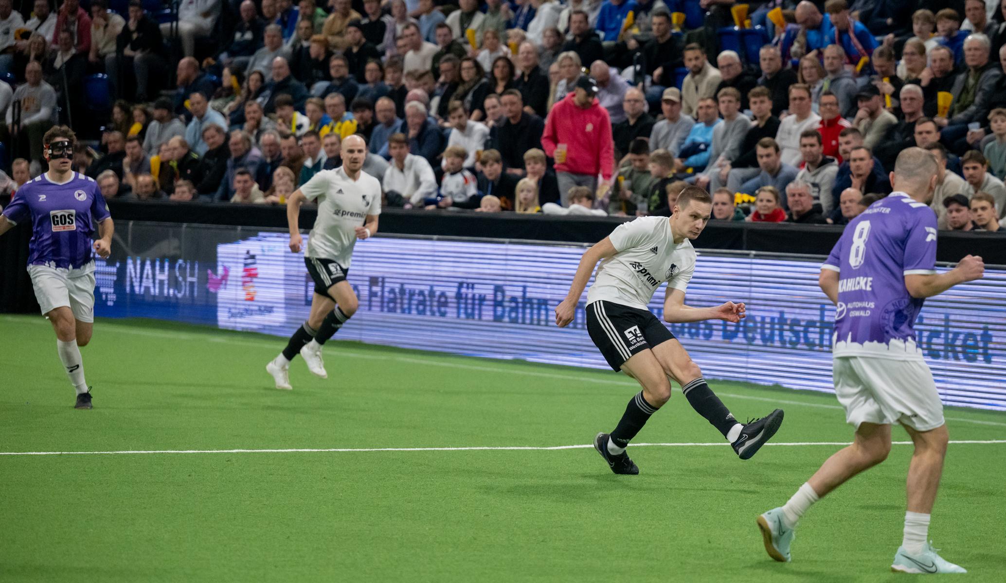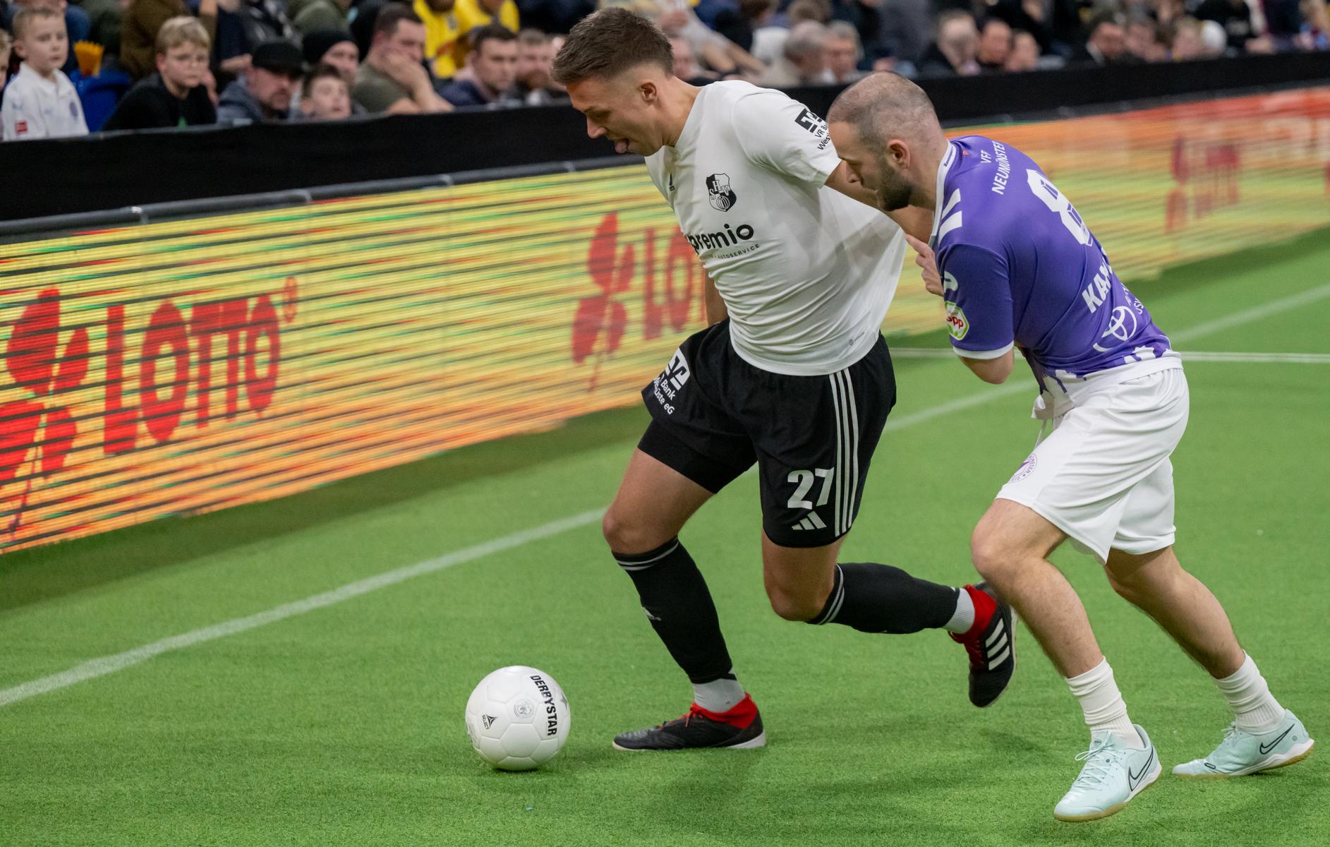 Im zweiten Gruppenspiel gegen den VfR Neumünster legten wir erneut stark los und führten schnell 2:0, Wolf und Gieseler trafen. Neumünster kam aber zurück und erkämpfte sich noch ein 2:2. Ein Spiel, das zeigte, wie eng die Duelle zwischen den beiden Oberligisten aktuell sind und wie schnell Partien in der Halle kippen können.