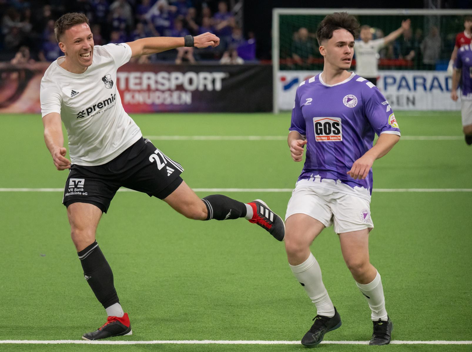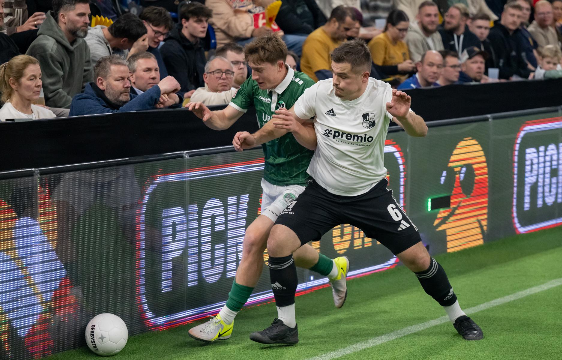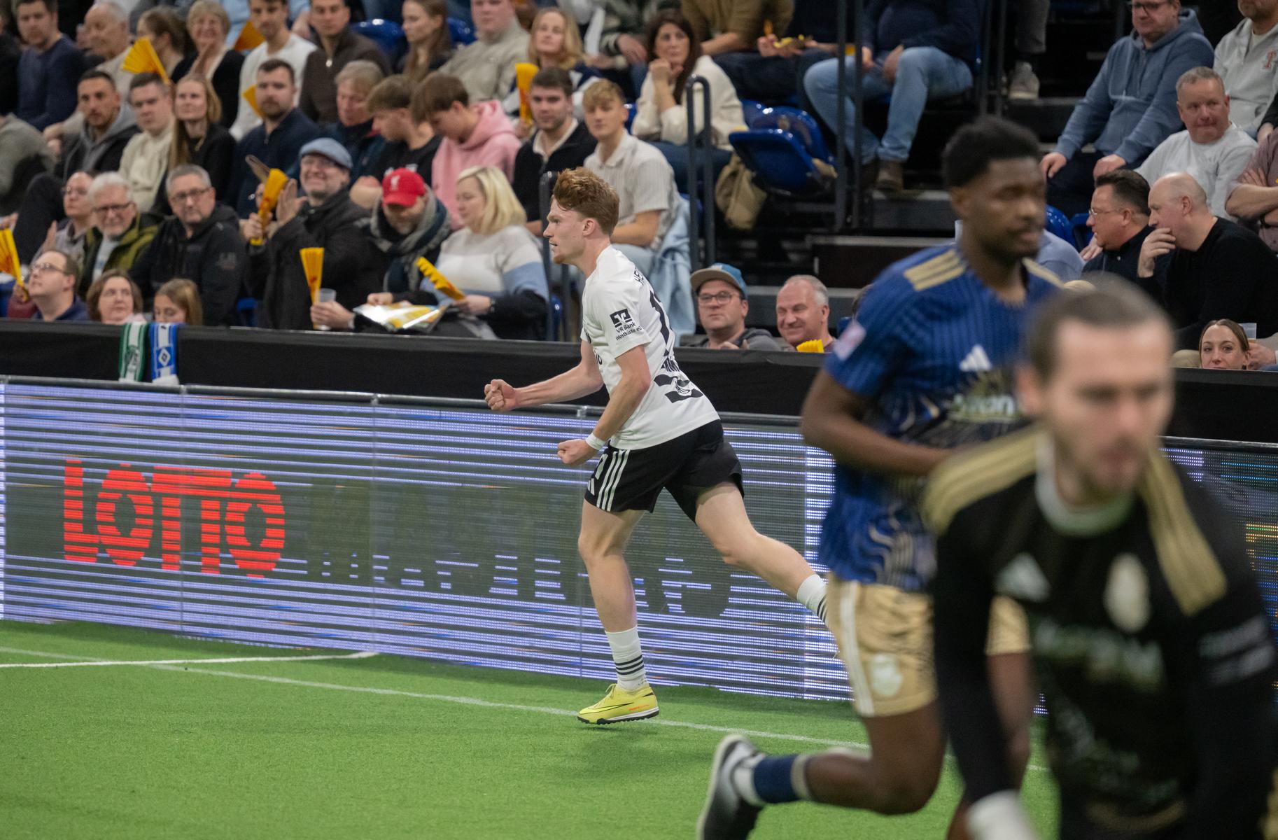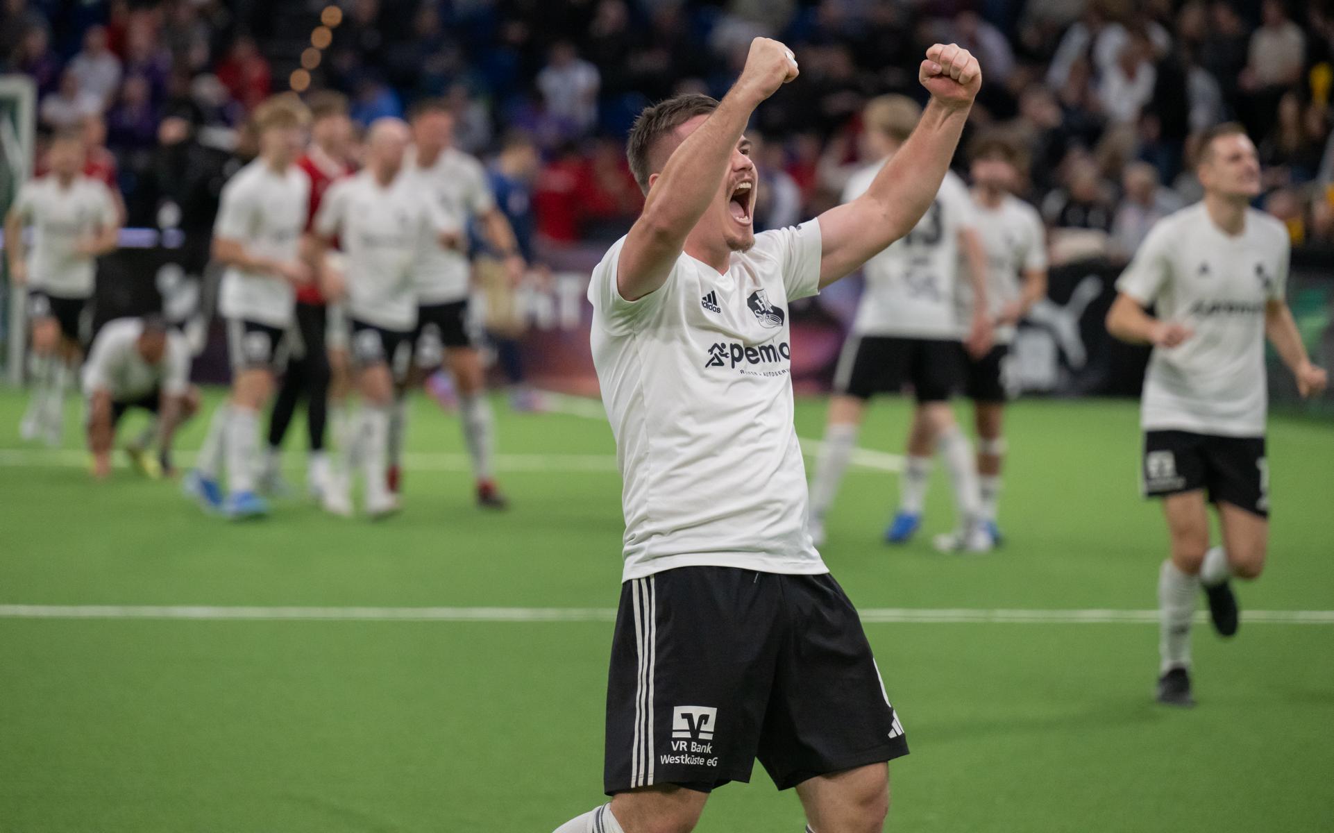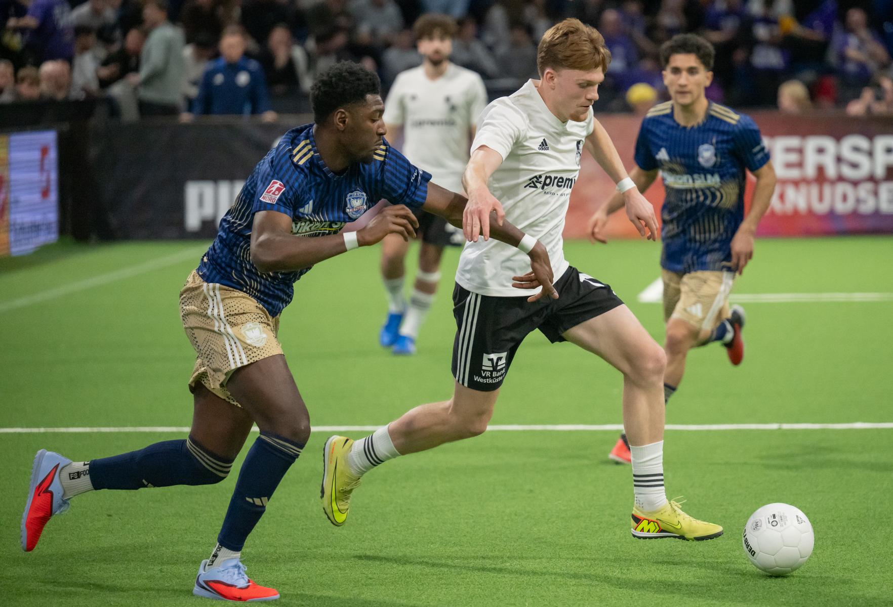 Im zweiten Gruppenspiel gegen den VfR Neumünster legten wir erneut stark los und führten schnell 2:0, Wolf und Gieseler trafen. Neumünster kam aber zurück und erkämpfte sich noch ein 2:2. Ein Spiel, das zeigte, wie eng die Duelle zwischen den beiden Oberligisten aktuell sind und wie schnell Partien in der Halle kippen können.
