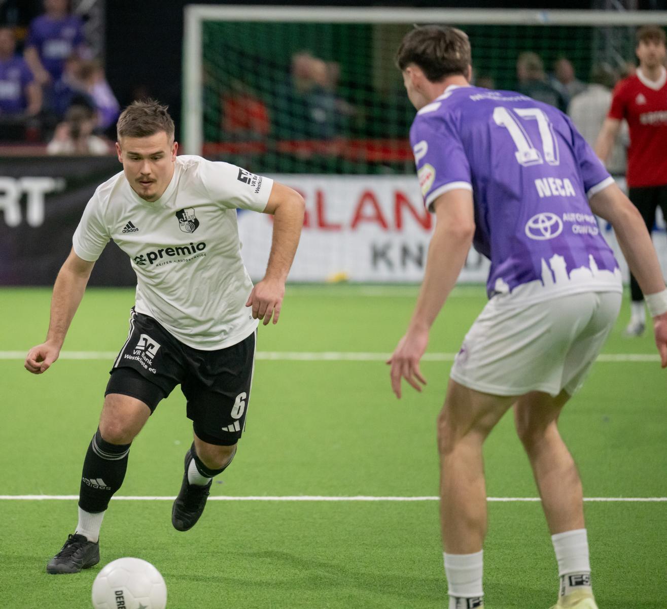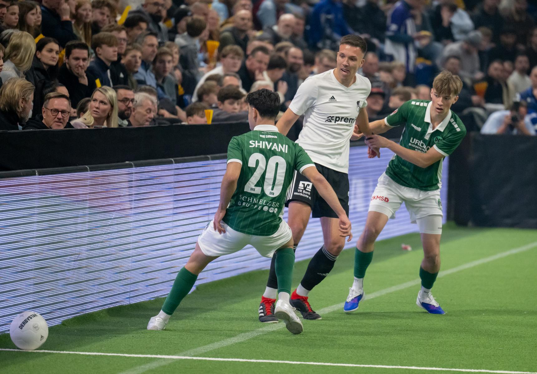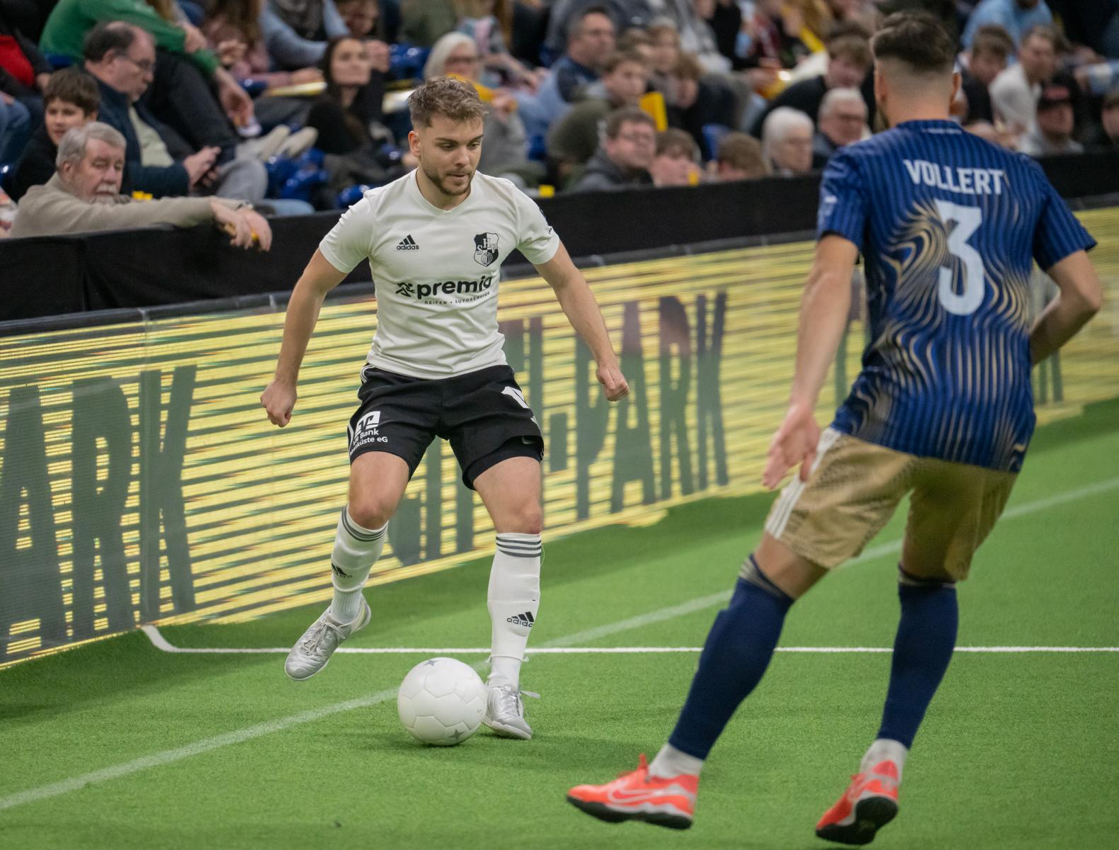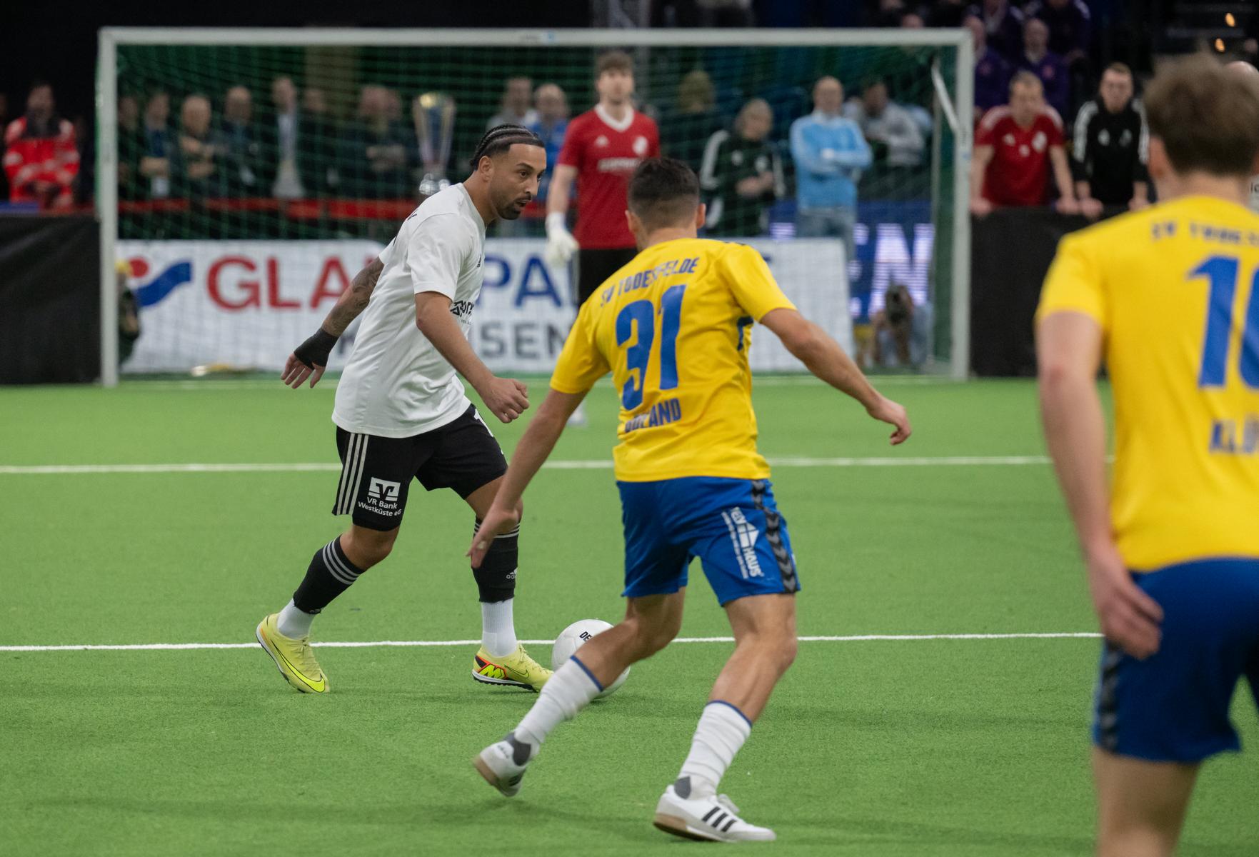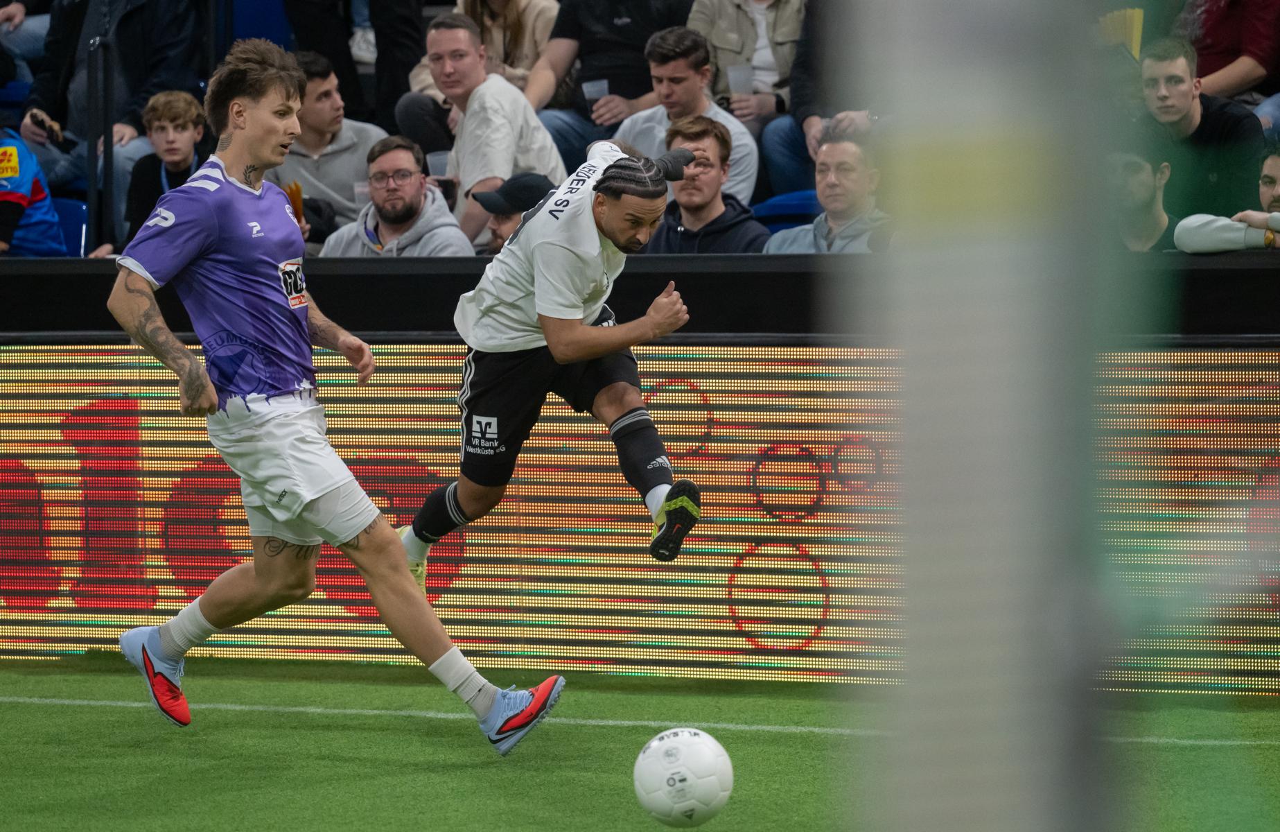 Im zweiten Gruppenspiel gegen den VfR Neumünster legten wir erneut stark los und führten schnell 2:0, Wolf und Gieseler trafen. Neumünster kam aber zurück und erkämpfte sich noch ein 2:2. Ein Spiel, das zeigte, wie eng die Duelle zwischen den beiden Oberligisten aktuell sind und wie schnell Partien in der Halle kippen können.