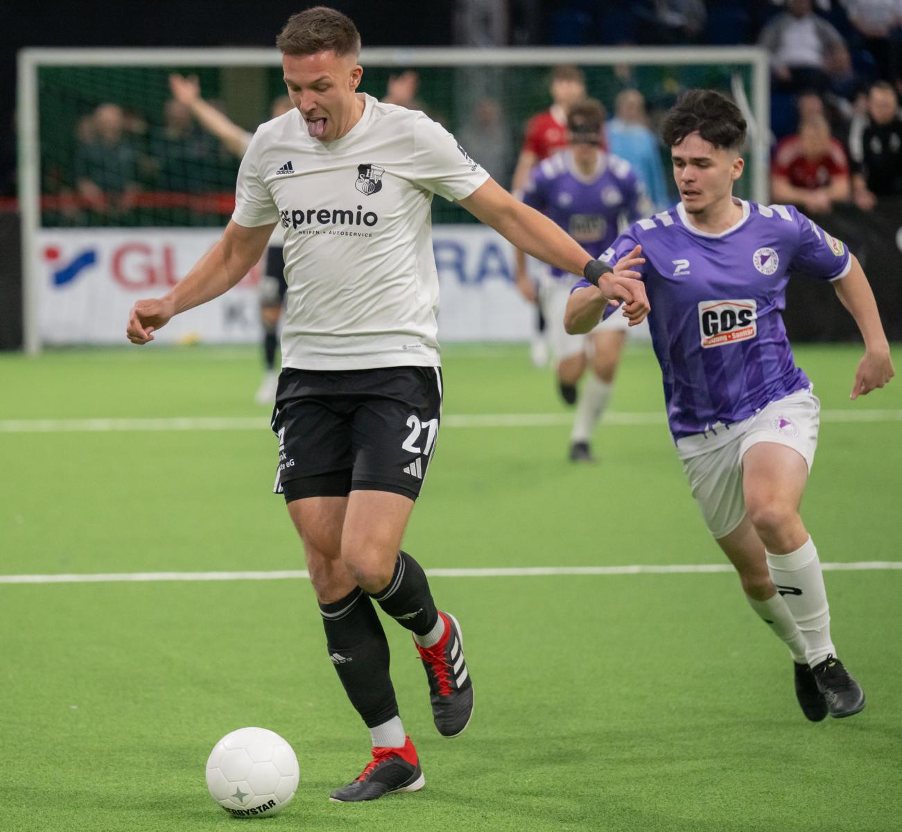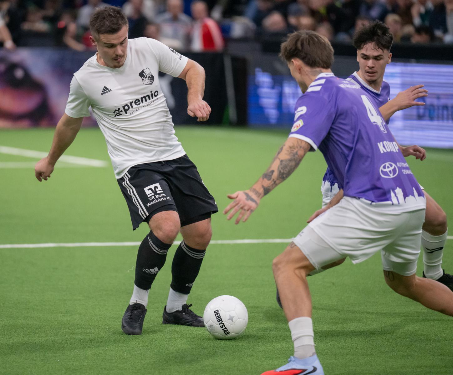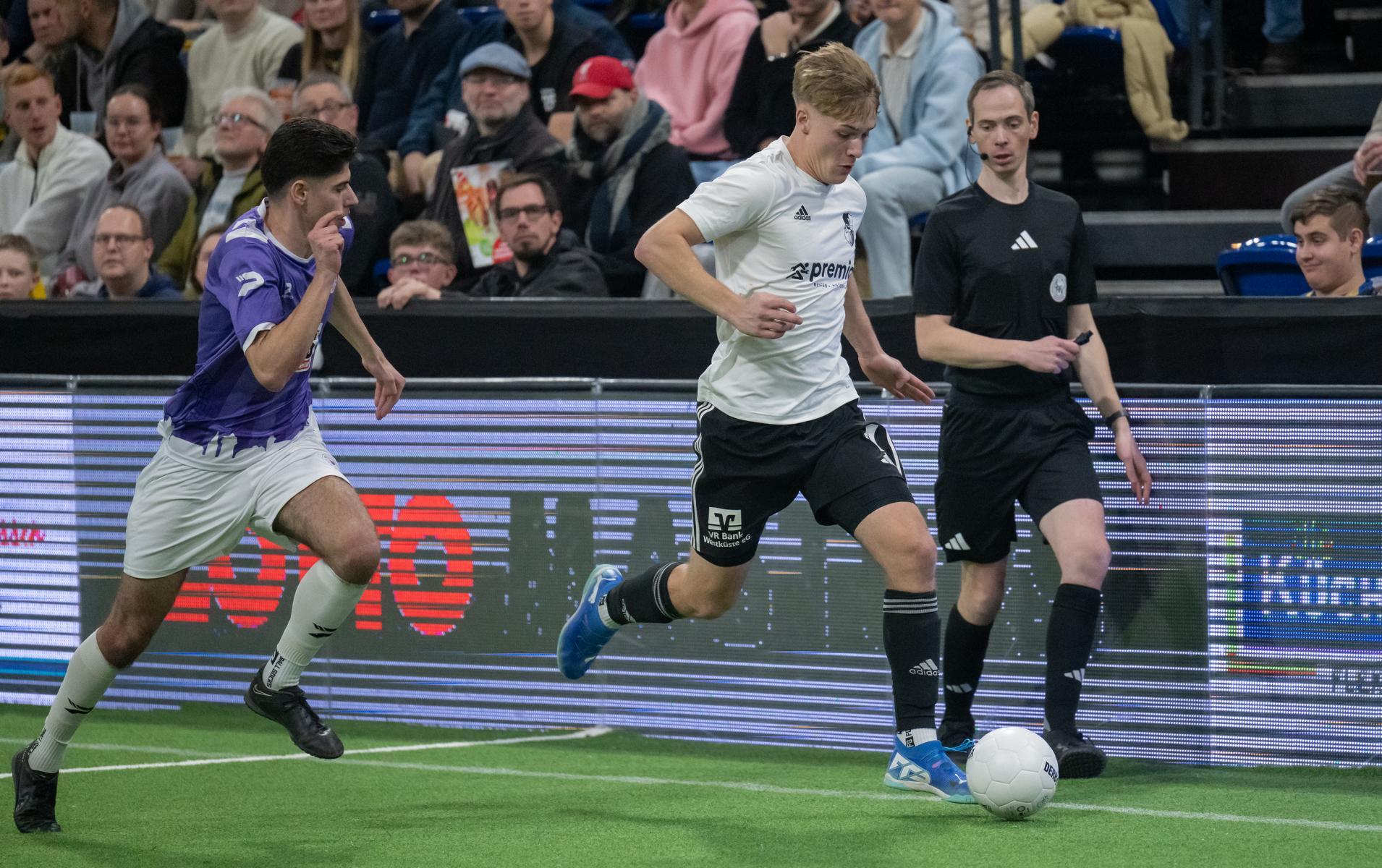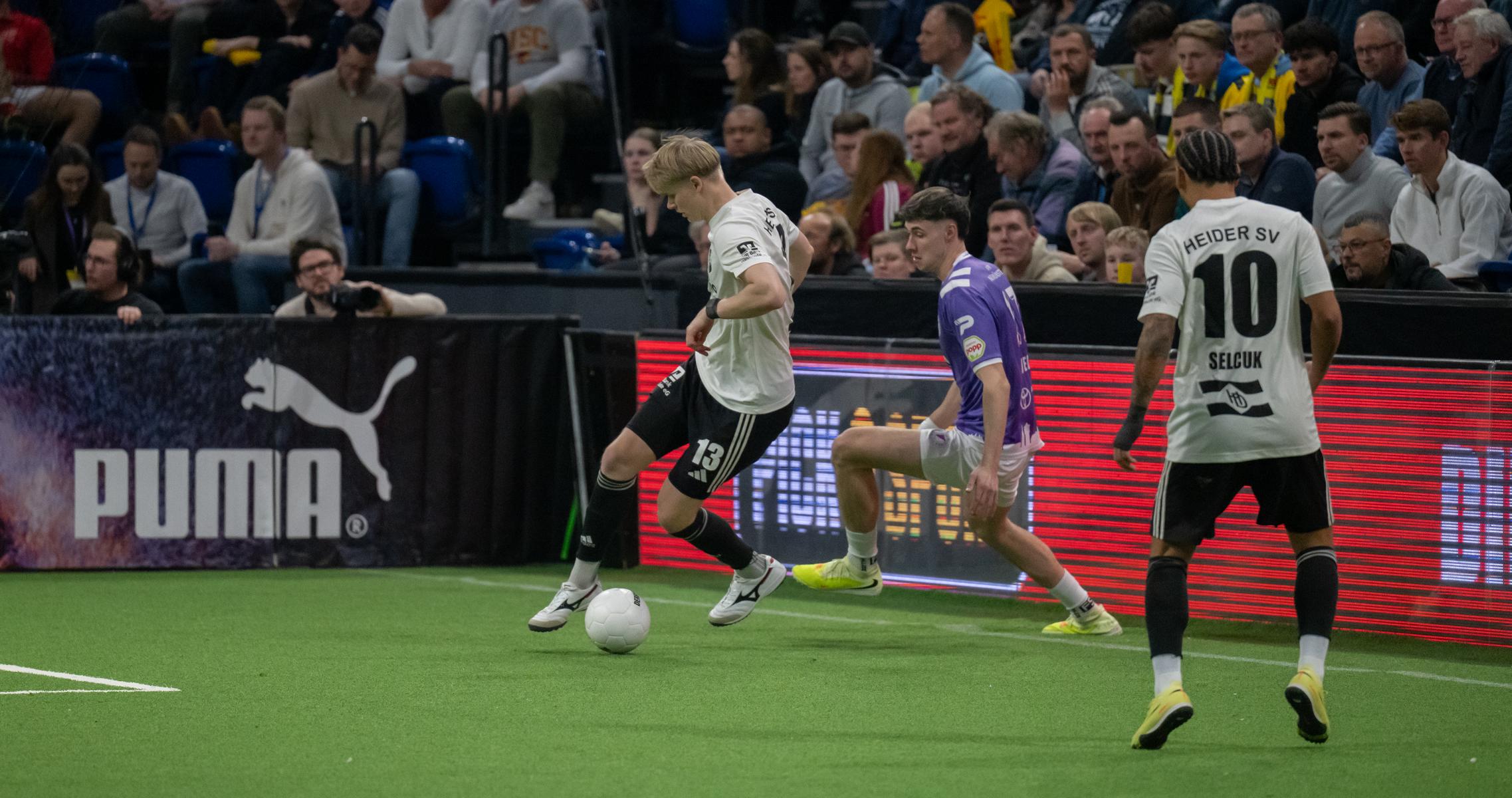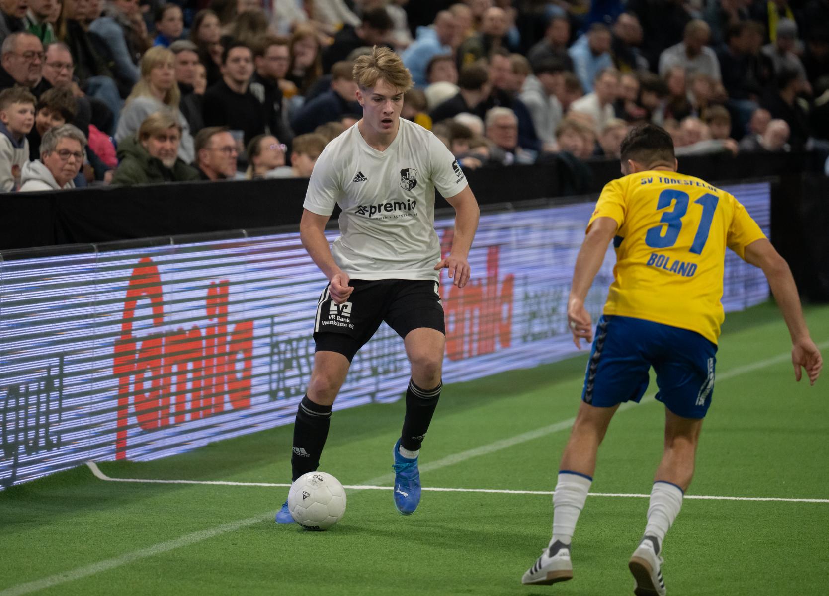 Im zweiten Gruppenspiel gegen den VfR Neumünster legten wir erneut stark los und führten schnell 2:0, Wolf und Gieseler trafen. Neumünster kam aber zurück und erkämpfte sich noch ein 2:2. Ein Spiel, das zeigte, wie eng die Duelle zwischen den beiden Oberligisten aktuell sind und wie schnell Partien in der Halle kippen können.