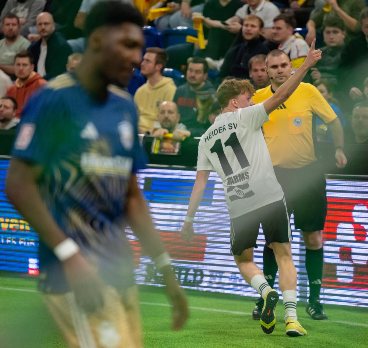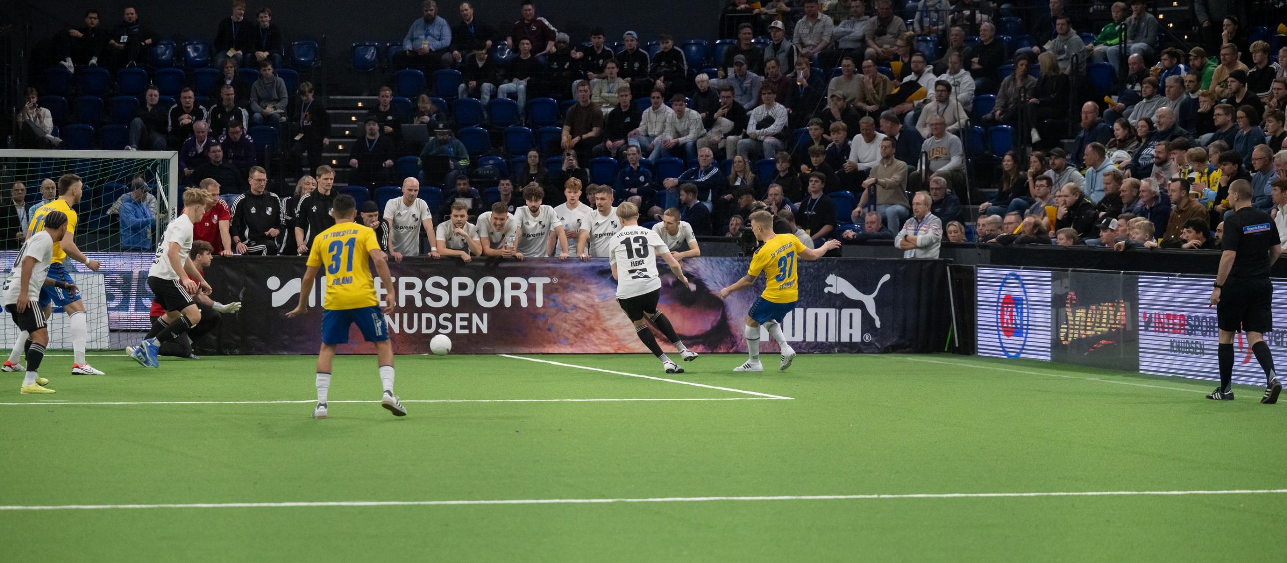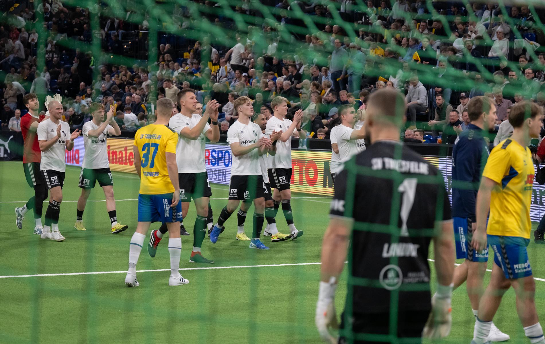 Als wir selbst durch eine Überzahlsituation verkürzten (Selcuk) und aufdrehten, wurde es richtig laut in der Halle. Die Hoffnung lebte, doch ein Konter brachte Todesfelde das 1:3 und damit die Entscheidung. Unser spätes Tor zum 2:3 (Arndt) änderte am Halbfinal-Aus nichts mehr.